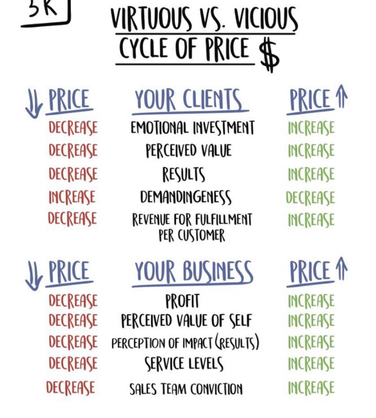 "In a real way, we were charging on a fraction of what our clients made using our system. This is important. Our clients still got a deal. The gap between what they paid (price) and what they got (value) was massive. As a result, the virtuous cycle continued to spin. We charged the most money. We provided the most value."