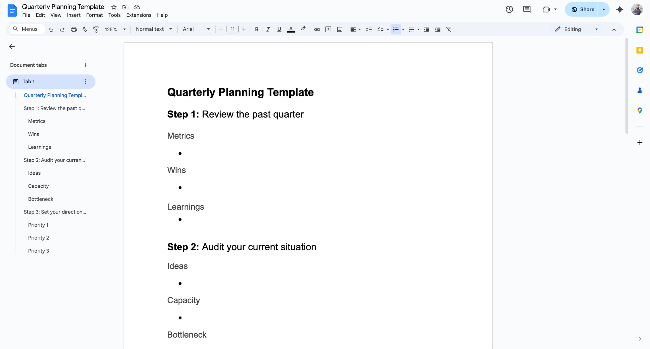 If you want to follow along, click the button below to download my Quarterly Planning Template - a one page Google Doc you can copy and fill in.