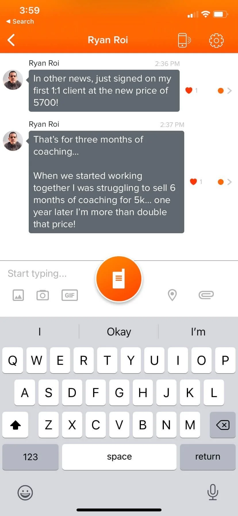 ✅ I was able to sign on two of the biggest coaching packages that I had ever sold in my coaching career. One coaching package was $2,700 for 3 months and another was $5,000 for 6 months.