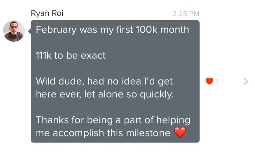 Ryan reached out to me at the end of 2023 letting me know that his business was now doing $100k+ in revenue each month. We re-engaged in 2024 so I could help him optimize his personal energy and stay grounded throughout this period of rapid growth. Here’s how Ryan become a million dollar coach: